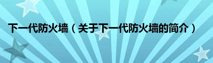 大家好,下一代防火墙,关于下一代防火墙的简介很多人还不知道,现在让我们一起来看看吧!