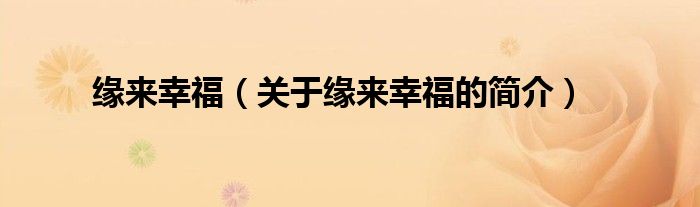 大家好,缘来幸福,关于缘来幸福的简介很多人还不知道,现在让我们一起来看看吧!