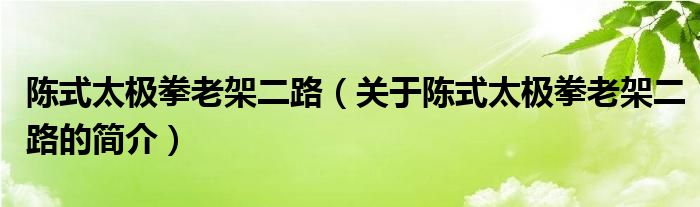 本文关于陈式太极拳老架二路的简介就讲解完毕,希望对大家有所帮助。