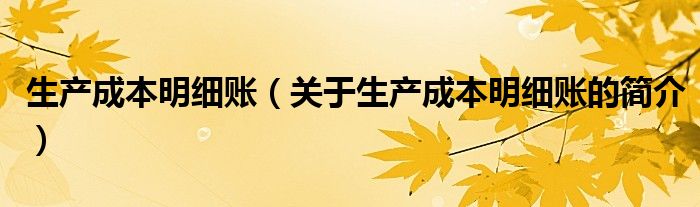 本文关于生产成本明细账的简介就讲解完毕,希望对大家有所帮助。