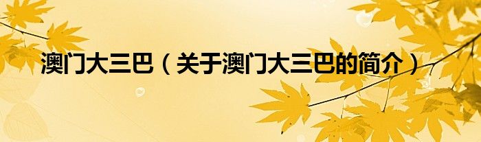 大家好,澳门大三巴,关于澳门大三巴的简介很多人还不知道,现在让我们一起来看看吧!