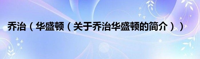 大家好,乔治 华盛顿,关于乔治 华盛顿的简介很多人还不知道,现在让我们一起来看看吧!