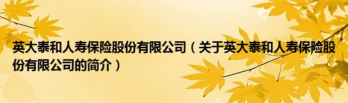 本文关于英大泰和人寿保险股份有限公司的简介就讲解完毕,希望对大家有所帮助。