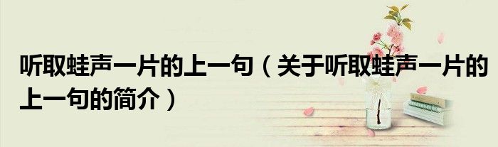 本文关于听取蛙声一片的上一句的简介就讲解完毕,希望对大家有所帮助。