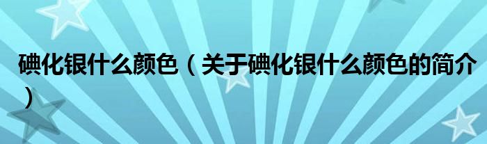 本文关于碘化银什么颜色的简介就讲解完毕,希望对大家有所帮助。