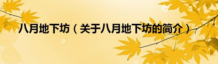 本文关于八月地下坊的简介就讲解完毕,希望对大家有所帮助。