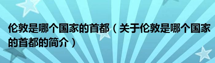 本文关于伦敦是哪个国家的首都的简介就讲解完毕,希望对大家有所帮助。