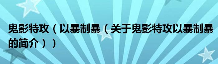 大家好,鬼影特攻 以暴制暴,关于鬼影特攻 以暴制暴的简介很多人还不知道,现在让我们一起来看看吧!