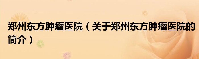 大家好,郑州东方肿瘤医院,关于郑州东方肿瘤医院的简介很多人还不知道,现在让我们一起来看看吧!