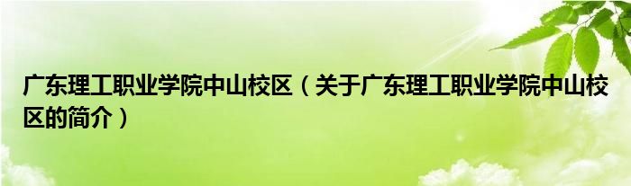 本文关于广东理工职业学院中山校区的简介就讲解完毕,希望对大家有所帮助。