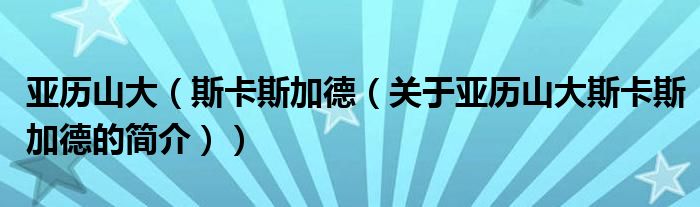 大家好,亚历山大 斯卡斯加德,关于亚历山大 斯卡斯加德的简介很多人还不知道,现在让我们一起来看看吧!