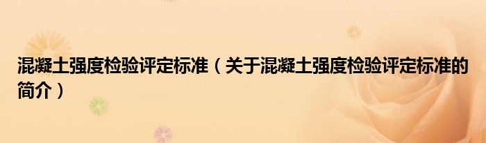 大家好,混凝土强度检验评定标准,关于混凝土强度检验评定标准的简介很多人还不知道,现在让我们一起来看看吧!