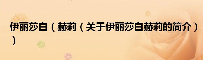 大家好,伊丽莎白 赫莉,关于伊丽莎白 赫莉的简介很多人还不知道,现在让我们一起来看看吧!