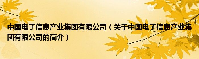 本文关于中国电子信息产业集团有限公司的简介就讲解完毕,希望对大家有所帮助。