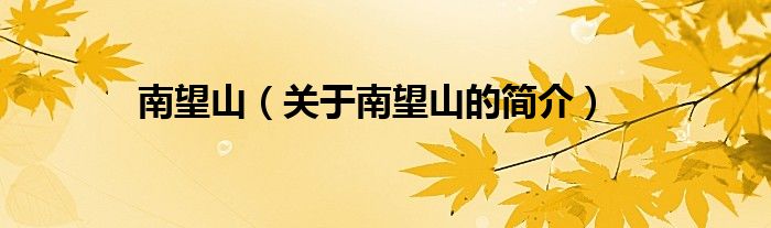 本文关于南望山的简介就讲解完毕,希望对大家有所帮助。
