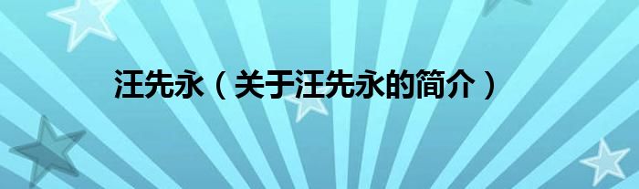 大家好,汪先永,关于汪先永的简介很多人还不知道,现在让我们一起来看看吧!