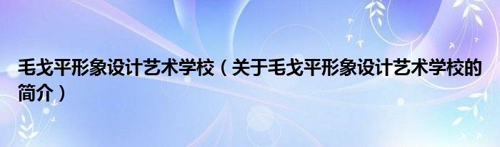 本文关于毛戈平形象设计艺术学校的简介就讲解完毕,希望对大家有所帮助。