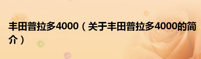 本文关于丰田普拉多4000的简介就讲解完毕,希望对大家有所帮助。