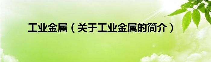 大家好,工业金属,关于工业金属的简介很多人还不知道,现在让我们一起来看看吧!