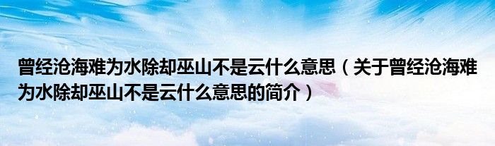 本文关于曾经沧海难为水除却巫山不是云什么意思的简介就讲解完毕,希望对大家有所帮助。
