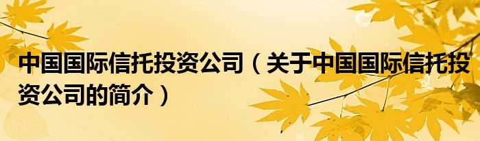 本文关于中国国际信托投资公司的简介就讲解完毕,希望对大家有所帮助。