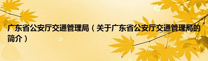 本文关于广东省公安厅交通管理局的简介就讲解完毕,希望对大家有所帮助。