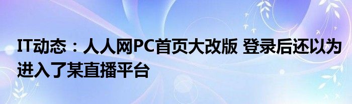 5G已经片区使用,很多小伙伴对通信这块还不熟系!越来越多的人开始对IT、5G信息方面产生兴趣,近来人人网PC首页大改版 登录后还以为进入了某直播平台的话题也是引起了很多人的关注,那么既然现在大家都想要知道人人网PC首页大改版 登录后还以为进入了某直播平台,小编今天就来给大家针对人人网PC首页大改版 登录后还以为进入了某直播平台做个详细介绍。