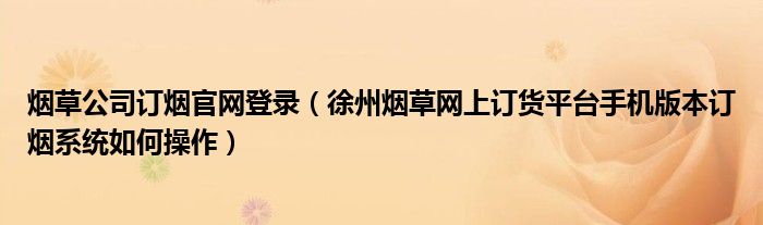 大家好,综合小编来为大家解答以上问题。烟草公司订烟官网登录,徐州烟草网上订货平台手机版本订烟系统如何操作很多人还不知道,现在让我们一起来看看吧!