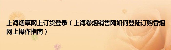 大家好,综合小编来为大家解答以上问题。上海烟草网上订货登录,上海卷烟销售网如何登陆订购香烟网上操作指南很多人还不知道,现在让我们一起来看看吧!