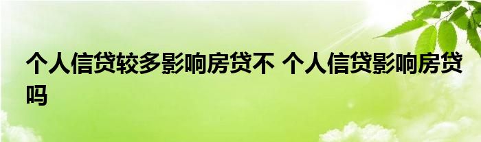 大家好,我是云百科的客服小柏,我来为大家解答以上问题。个人信贷较多影响房贷不,个人信贷影响房贷吗,很多人还不知道,现在让我们一起来看看吧!