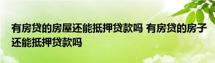 大家好,我是云百科的客服小柏,我来为大家解答以上问题。有房贷的房屋还能抵押贷款吗,有房贷的房子还能抵押贷款吗,很多人还不知道,现在让我们一起来看看吧!