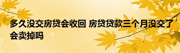 大家好,我是云百科的客服小柏,我来为大家解答以上问题。多久没交房贷会收回,房贷贷款三个月没交了会卖掉吗,很多人还不知道,现在让我们一起来看看吧!