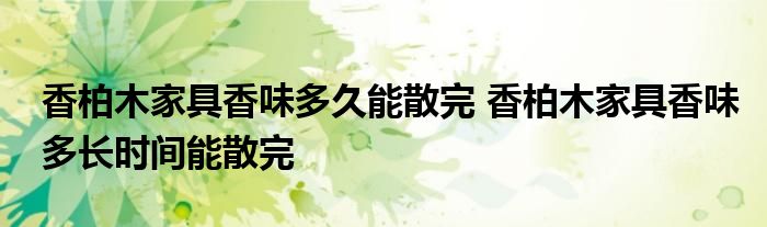 大家好,小美来为大家解答以上问题。香柏木家具香味多久能散完,香柏木家具香味多长时间能散完很多人还不知道,现在让我们一起来看看吧!