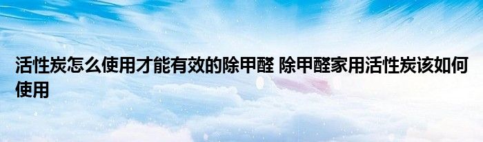 大家好,小美来为大家解答以上问题。活性炭怎么使用才能有效的除甲醛,除甲醛家用活性炭该如何使用很多人还不知道,现在让我们一起来看看吧!