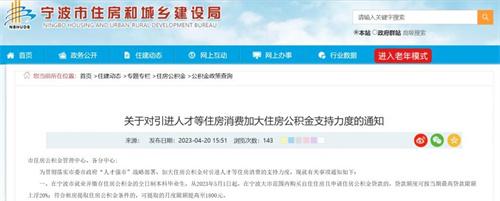 4月21日浙江宁波发布微信公众号其内容是宁波住房公积金管理委员会在4月20日下午发布《关于对引进人才等住房消费加大住房公积金支持力度的通知》,强调人才租房提取与购房贷款来提供住房公积金优惠政策的扶持,该内容主要是涉及多方面的政策优惠,其中最显突出的一点优势就是对于全日制的本科和硕士研究生的公积金购房贷款与租房提取方面大力度提供优惠政策,明确规定在宁波就业并缴存住房公积金的全日制本科、硕士毕业生从2023年5月1日起从宁波购买自住住房并且能申请住房公积金贷款,贷款的额度是可以上浮分别在20%和30%。