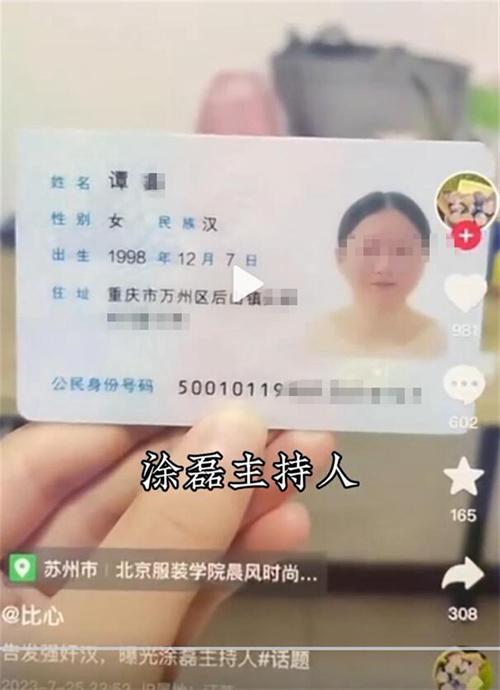 这起事件的具体经过是在7月26日有一名网友在短视频平台发布了一段视频以及帖子,这名网友表示自己在19岁的时候就被知名的主持人涂磊进行了性侵,涂磊对自己的信心给自己带来了极大的心理创伤,因此希望公安机关可以对涂磊追究其相应的法律责任,同时这名网友还将自己的身份证以及照片进行了公开,根据证明网友所公开的身份证上的信息来看,这名网友1998年出生,为重庆人。