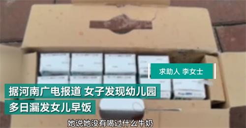 近日,河南郑州的李女士发现,自己三岁的女儿在幼儿园上学19天竟然有八天时间没有吃到早饭,这样的情况让自己感到十分担忧。于是便将此事曝光给媒体,质疑此事是园方的疏忽和不负责任,对幼儿园产生了深深的怀疑,针对此事幼儿园方面表示是校方的工作失误,并且退还了李女士孩子的餐费和学费。