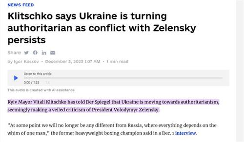 北京时间12月03日,根据乌克兰的媒体报道,乌克兰首都基辅的市长维塔利·克利钦科在近段时间接受德国媒体的采访的时候表示,乌克兰现在正在逐渐的变成一个专制国家,现在乌克兰的国家已经和俄罗斯国家没有太大的区别了,认为现在的乌克兰国家是一个人说了算,就如同俄罗斯有普京说了算一样的,他的这一番话语疑似在指桑骂槐,可能骂的就是乌克兰的总统泽连斯基。
