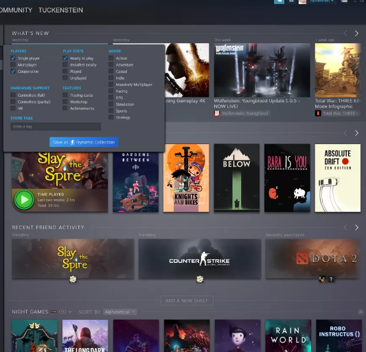 在某些方面,重新设计让我想起了Gog的Galaxy 2 beta ; 像Galaxy一样,Steam添加了“架子”的比喻,新版本也旨在将信息整合到更多可扫描的块中。我喜欢Collections的想法,特别是基于自动更新的动态集合,虽然我真的希望能够通过不同的功能进行过滤 - 例如,Steam Cloud支持是一个很大的支持,特殊功能也是如此像HDR或DXR支持和系统要求(它可以在马铃薯上运行吗?),虽然后者可能不是很多人的大需求。