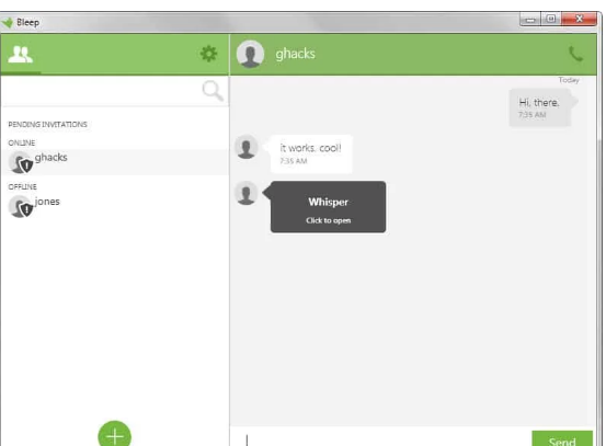 Bleep的第一个重要功能是您无需注册帐户即可开始使用它。您要做的就是输入一个昵称,您的朋友和联系人会在其联系人栏中和聊天中看到该昵称。
