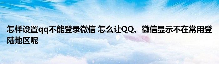 大家好,我是云百科的客服小柏,我来为大家解答以上问题。怎样设置qq不能登录微信,怎么让QQ、微信显示不在常用登陆地区呢很多人还不知道,现在让我们一起来看看吧!