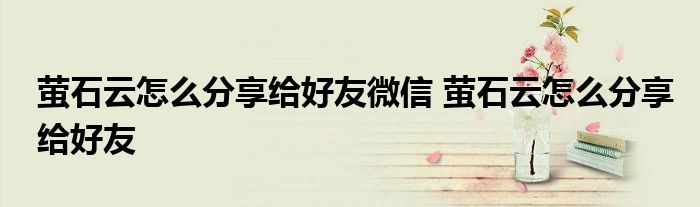 大家好,小詹来为大家解答以上问题。萤石云怎么分享给好友微信,萤石云怎么分享给好友很多人还不知道,现在让我们一起来看看吧!