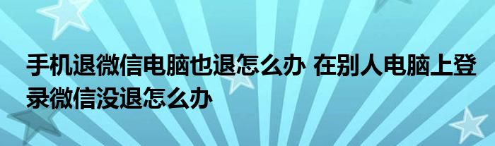 大家好,小詹来为大家解答以上问题。手机退微信电脑也退怎么办,在别人电脑上登录微信没退怎么办很多人还不知道,现在让我们一起来看看吧!