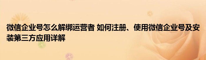 大家好,我是云百科的客服小柏,我来为大家解答以上问题。微信企业号怎么解绑运营者,如何注册、使用微信企业号及安装第三方应用详解很多人还不知道,现在让我们一起来看看吧!