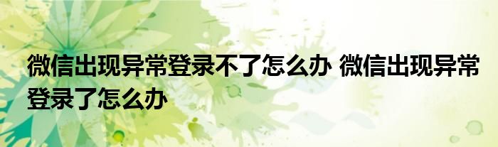 大家好,我是云百科的客服小柏,我来为大家解答以上问题。微信出现异常登录不了怎么办,微信出现异常登录了怎么办很多人还不知道,现在让我们一起来看看吧!