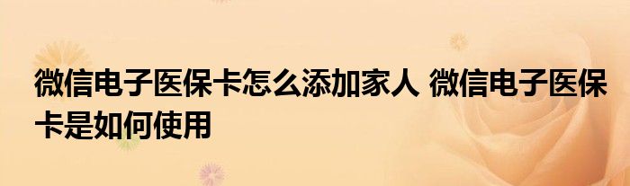 大家好,小詹来为大家解答以上问题。微信电子医保卡怎么添加家人,微信电子医保卡是如何使用很多人还不知道,现在让我们一起来看看吧!