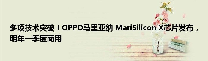 12月14日,OPPO于INNO DAY期间发布了首款自研NPU芯片——马里亚纳MariSilicon X。会上,OPPO芯片产品高级总监姜波表示:"马里亚纳 MariSilicon X是 OPPO未来十年影像的开篇之作,它将和通用平台一起构成手机核心运算的左右大脑,正式开启'一机双芯'时代。" 同时,OPPO在会上宣布马里亚纳 MariSilicon X将于2022年第一季度在OPPO高端旗舰Find X系列新品首发搭载。