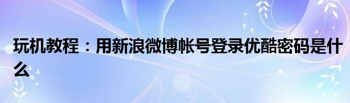 用新浪微博帐号登录优酷密码是新浪微博的登录密码。使用新浪微博登录优酷的方法:1.打开浏览器,搜索优酷,进入优酷官网;2.进入之后,点击右上角的登录;3.弹出登录框,选中其他方式,在其他方式,选择新浪微博,然后登录并使用新浪微博授权登录即可。
