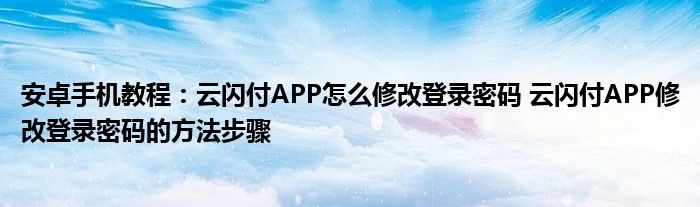 如今使用安卓手机的小伙伴们是越来越多了,那么安卓手机当中是有很多小技巧的,这些技巧很多小伙伴一般都是不知道如何来实用的,就好比最近就有很多小伙伴们想要知道云闪付APP怎么修改登录密码 云闪付APP修改登录密码的方法步骤 ,那么既然现在大家对于云闪付APP怎么修改登录密码 云闪付APP修改登录密码的方法步骤 都感兴趣,小编就来给大家分享下关于云闪付APP怎么修改登录密码 云闪付APP修改登录密码的方法步骤 的一些信息吧。