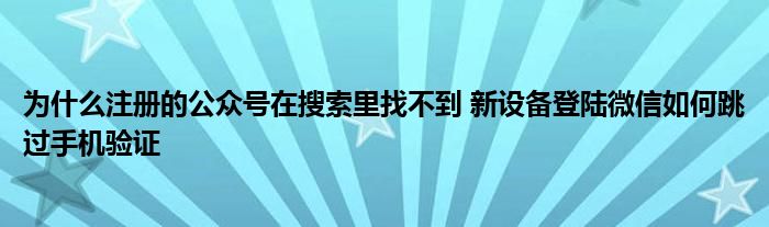 今天小编来给大家针对这个为什么注册的公众号在搜索里找不到 新设备登陆微信如何跳过手机验证的问题来进行一个介绍,毕竟当下也是有诸多的小伙伴对于为什么注册的公众号在搜索里找不到 新设备登陆微信如何跳过手机验证这个问题非常的重视的,下面大家可以看下具体的详情